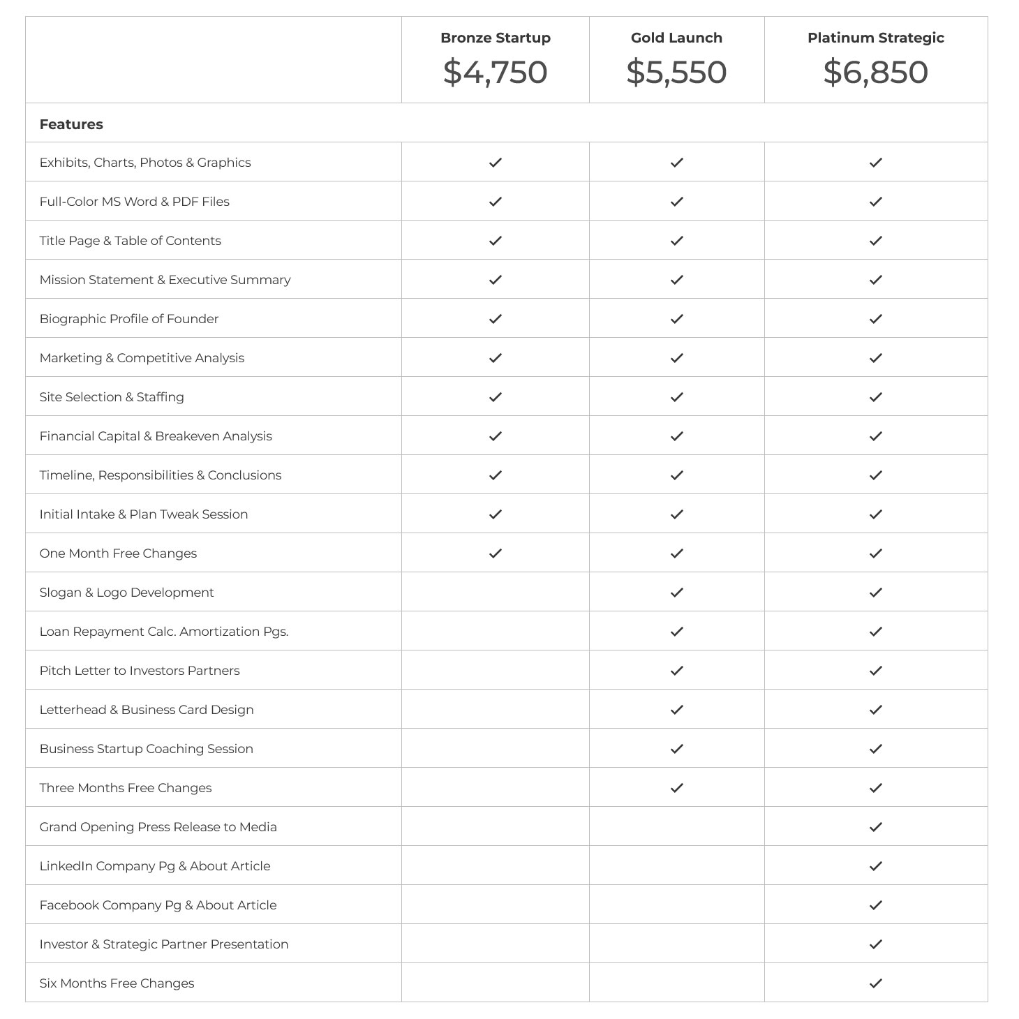 WinningBusinessPlan that meets many requirements, but is less in depth than our other two plans. This package includes visual elements, research, and content.